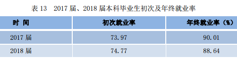 截至 2018 年 8 月 31 日,学校应届本科毕业生总体就业率达 74.77%。