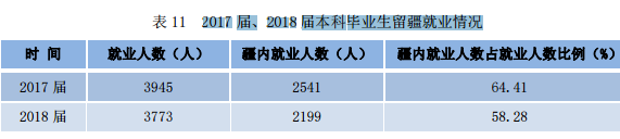 2017 届、2018 届本科毕业生留疆就业情况: