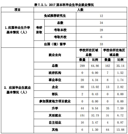 2018届本科毕业生472人,就业人数468人,就业率99.15%。