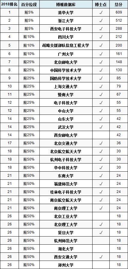 整理软科中国最好学科排名(2018)如下,仅供参考: