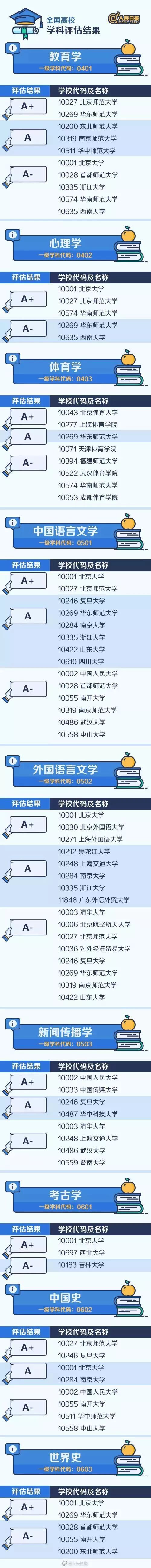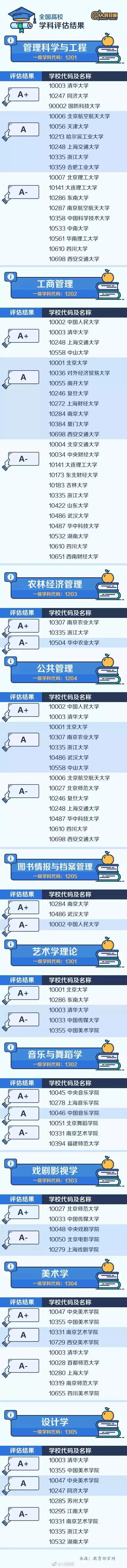 其中前2%(或前2名)为A+,2%~5%为A,5%~10%为A-,文、理、工、农、医、管理、艺术7大门类都有!