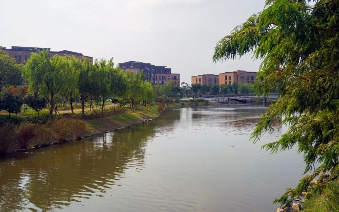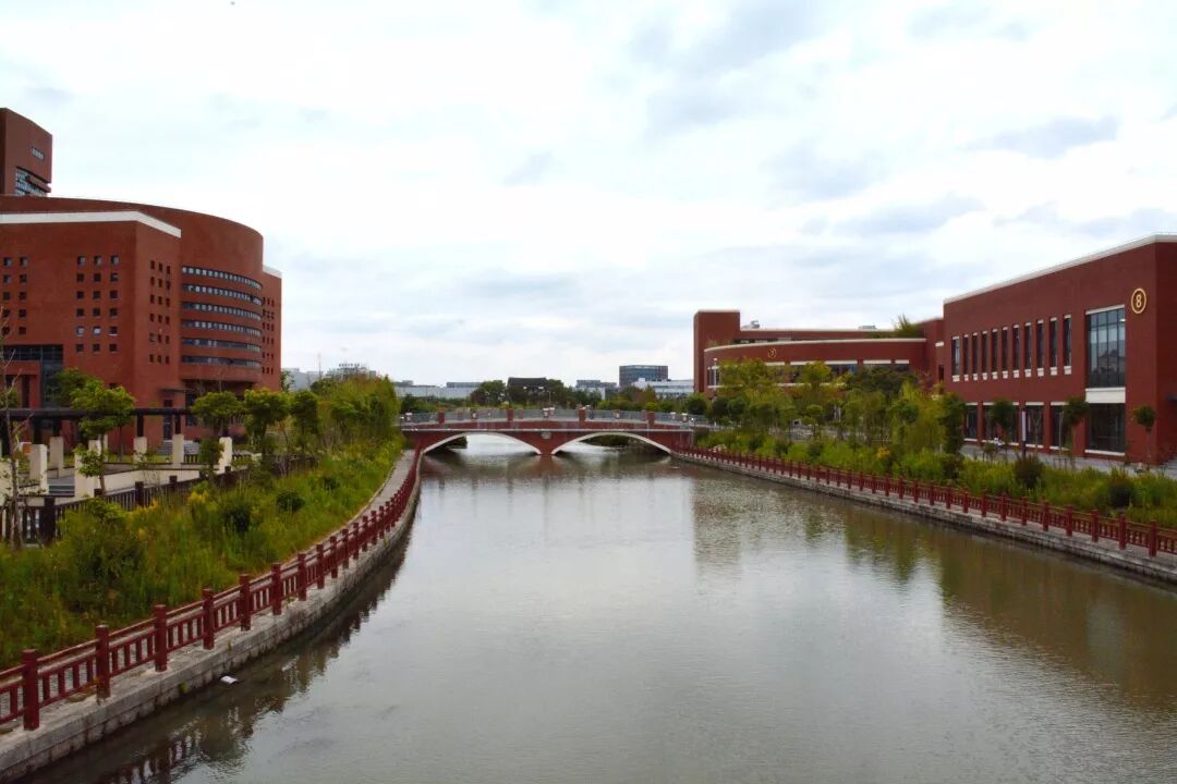 上海应用技术大学奉贤校区校园河南北穿行,东西横贯,于学校正门附近交汇成开阔水域。一水承四季,两岸共朝夕。春日繁花、夏日浓荫、秋日微风、冬日暖阳,一季有一季的景,唯有河水淙淙,流向远方。