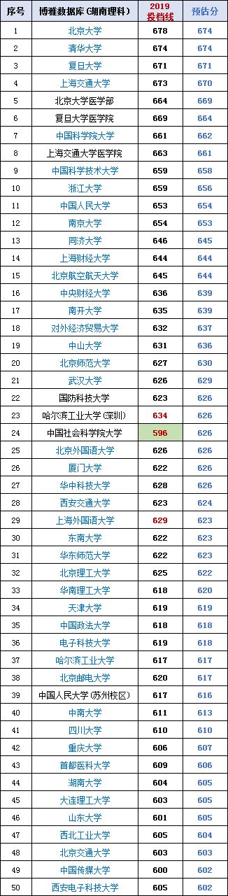 与公众号6月27日预估湖南(理工)一本266所高校投档分基本接近。