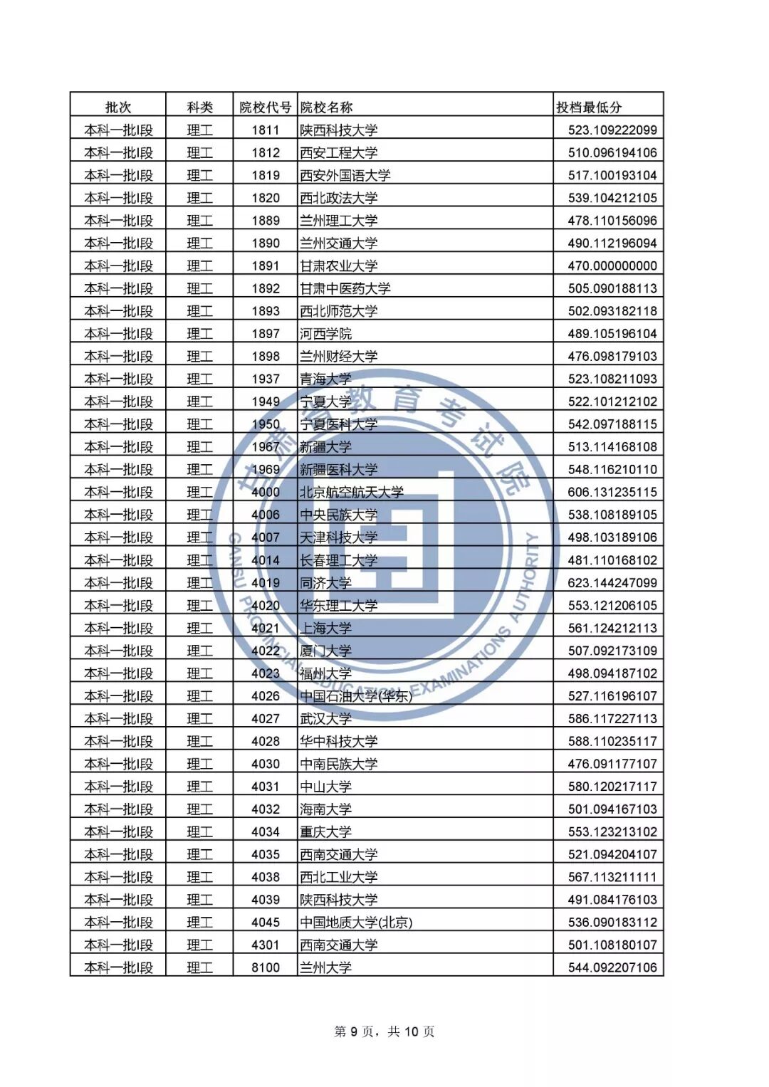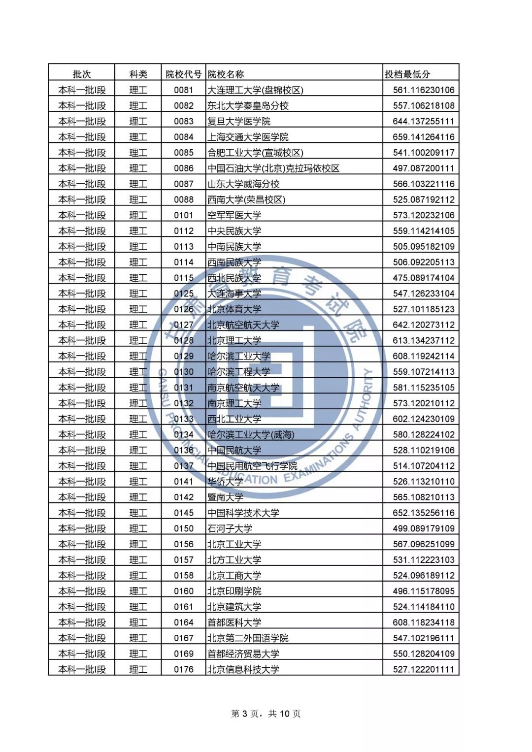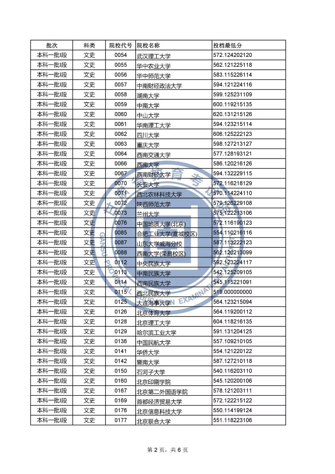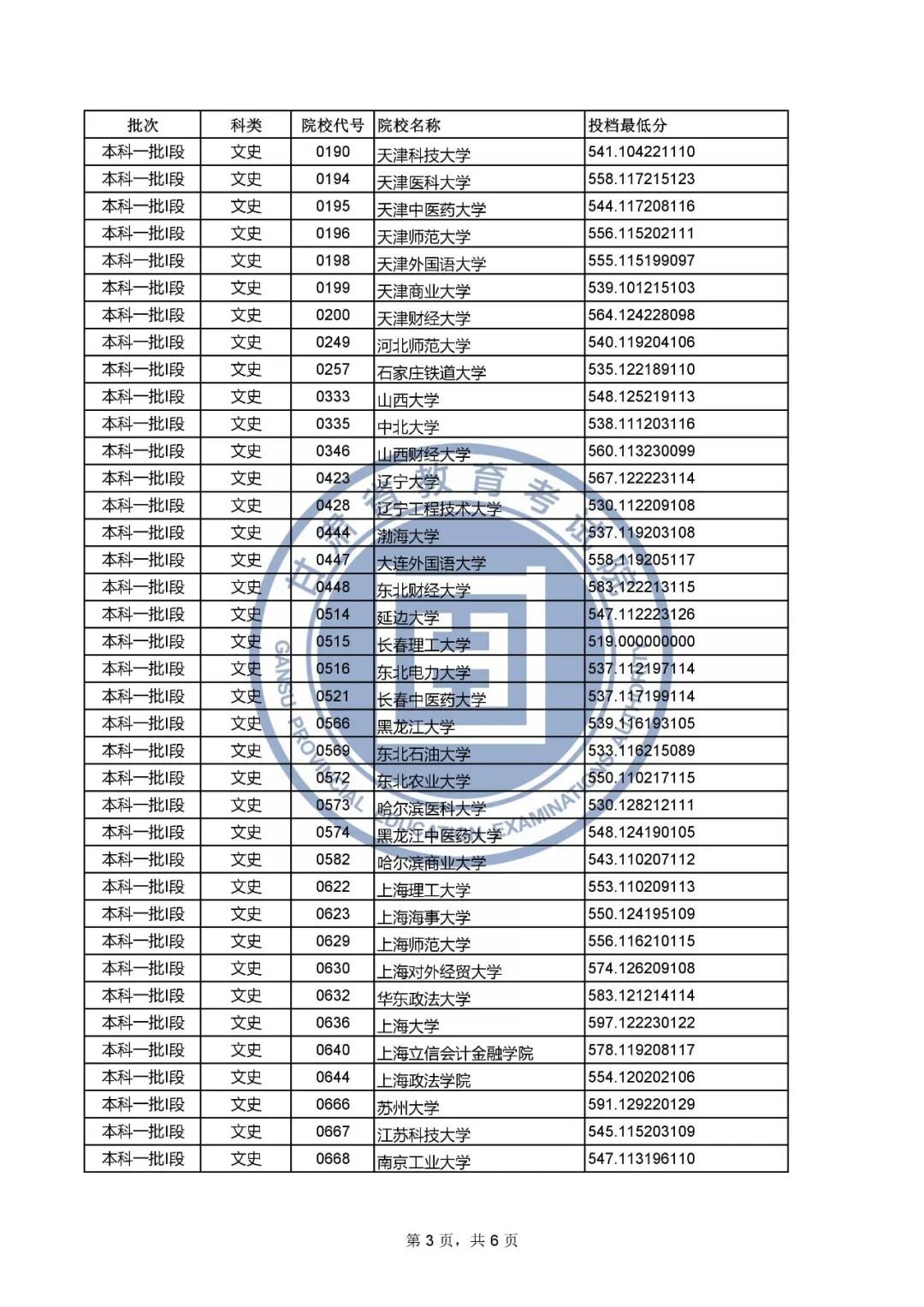 3.部分院校有多种招生类型,同一所院校会出现不同的投档最低分,具体请根据院校代号对照《2019年甘肃省普通高校招生专业目录》。