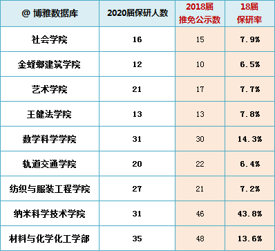 因未获得苏大2018、2019届公示数据,特将已整理2018届部分院系数据与今年进行对照: