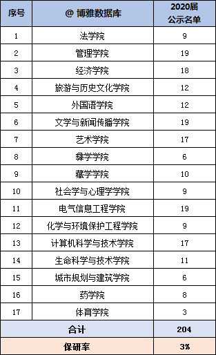 学校具备推免资格,2020届保研名单共204人,详情如下: