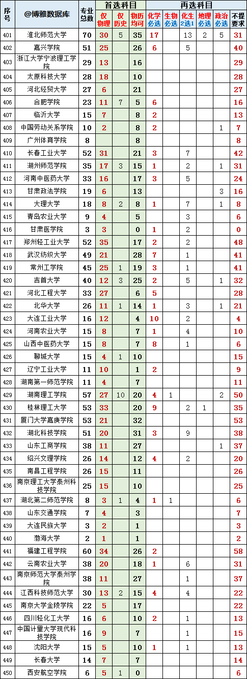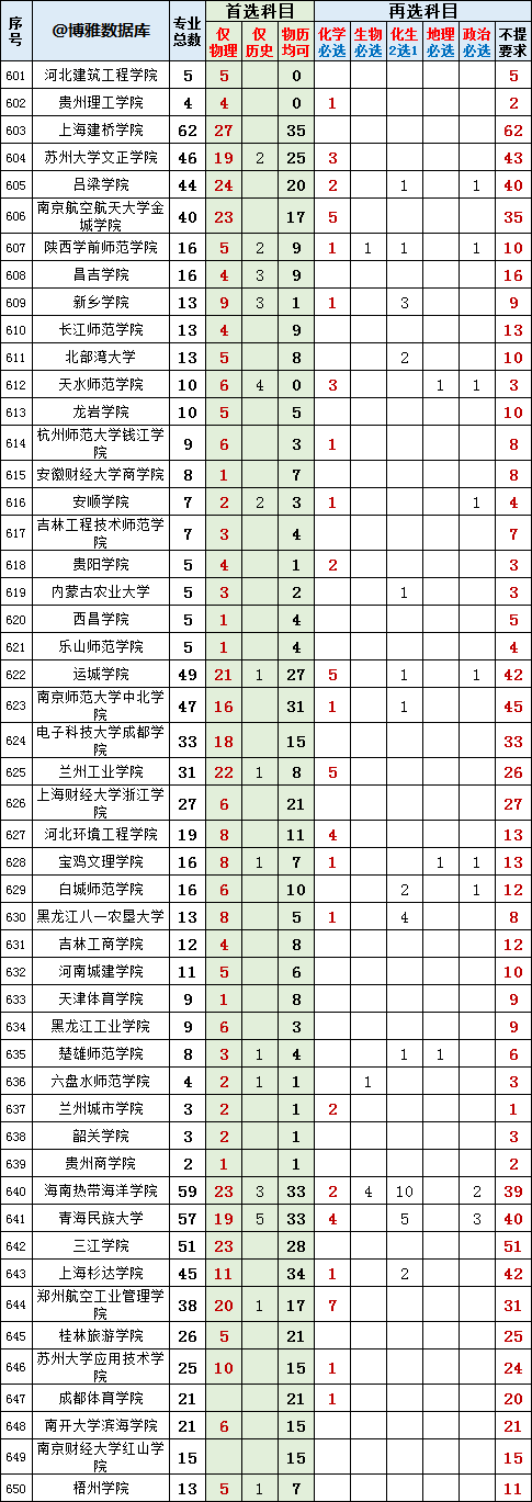 备注:因版面原因,再选科目仅列出6种要求:②化学必选、⑧生物必选、④化学生物2选1、⑰地理必选、⑭思想政治必选、①不提科目要求。