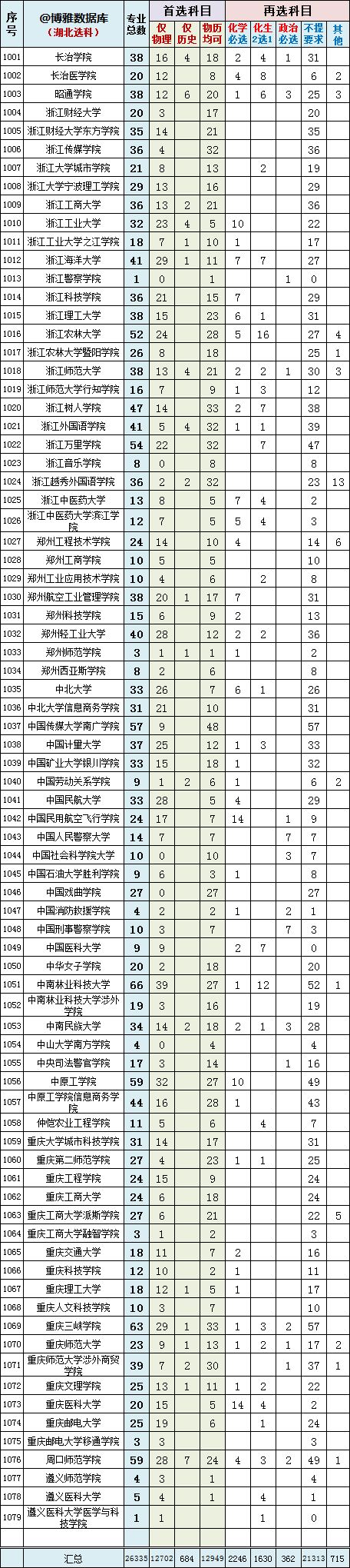 专业数量最多,共计21313个,占全部专业总数比例80.9%。➤完全不限:物理历史均可+不提科目要求,专业数量11759个,占比44.7%。➤仅物理+不提科目要求,专业数量9049个,占比34.4%。➤仅历史+不提科目要求,专业数量505个,占比1.9%。➤仅物理+化学必选,专业2005个,占比7.6%。武大、吉大、南大要求的化学必选的专业较多,超过10个;