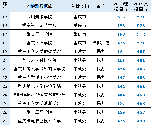 注:部分高校有几个招生代码,如西南大学在重庆招生代码有5006、5052、5004,此处仅列出5006投档分。