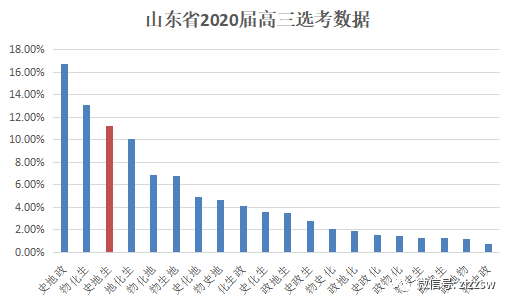“3+3”模式下,考生可在20种组合中选择,史地生受欢迎度较高。以下为山东省2020届高三选科数据情况,史地生组合选考排名位列第3。