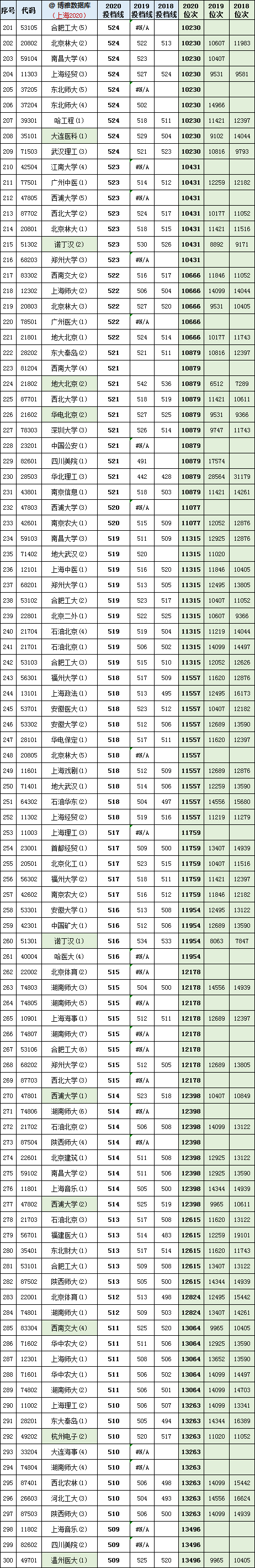 2018-2020位次不一定是传承关系,后续将整理高校最低投档分(门槛分)、位次对照表。