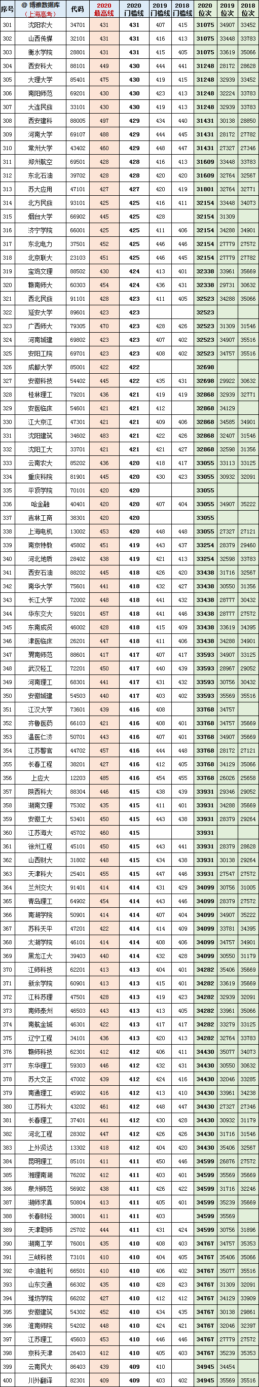 2018-2020门槛分,没有区分普通专业、中外合作专业。