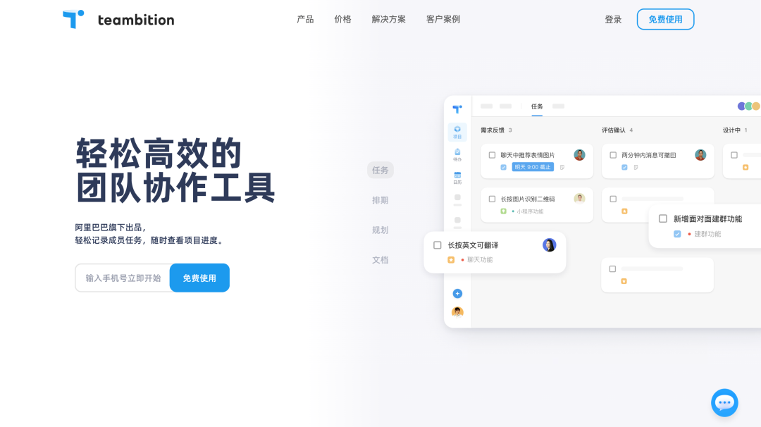 另外,我在翻看该网站的“解决方案”页时,发现了产品在“任务”、“排期”、“规划”和“文档”等方面的功能亮点。