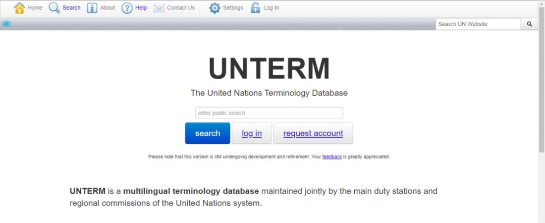 联合国多语言术语库(UNTERM)是联合国内部官方多语种术语库,收集的词汇主要源于联合国大会、安全理事会、经济及社会理事会、托管理事会等主要机构日常文件。因此它收集的术语主要和各种全球性议题相关,比如气候变化、民主、难民、反恐、可持续发展目标、非殖民化等主题。该术语库最大亮点是内容独一性和权威性,提供联合国6种工作语言(英、法、俄、汉、阿、西)的术语对应查询服务。用户不仅能查看某个词汇的词义,还能看到这个术语在联合国内部不同机构出现的频率、在不同主题内容中出现的频率等等。想在外交、公共政策、国际关系等这些领域工作的朋友,这个术语库一定会很用帮助。此外备考CATTI考试的同学也可以经常去看看,因为全球性议题的文章经常出现在CATTI考试里。http://termonline.cn/index.htm![]()