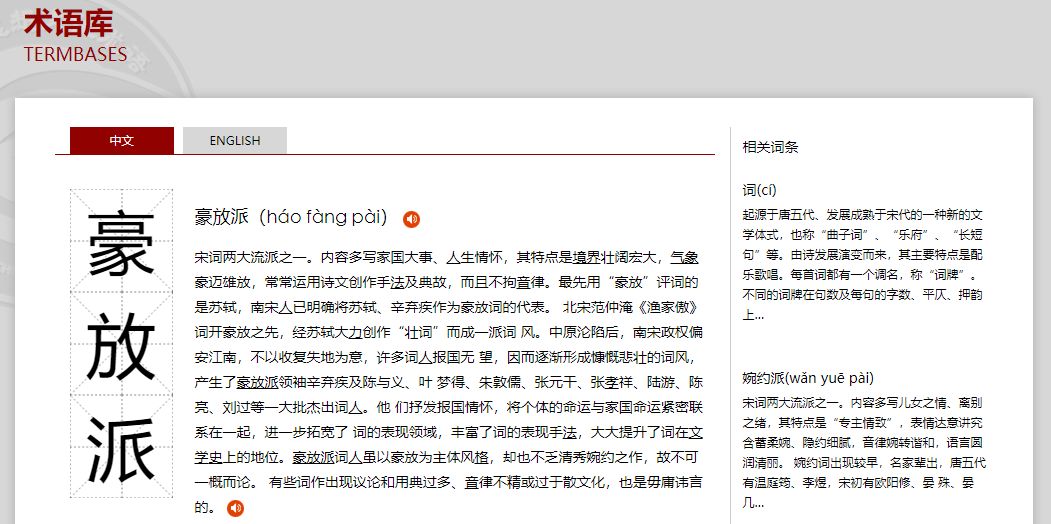 https://www.cnkeywords.net/index中国核心语汇是一部多语种网络百科全书,海量收录具备中国特色的热点词条,数百位专家学者潜心解读,多语种权威翻译,致力于让全球网友与语言学习者正确解读中国文化。![]()