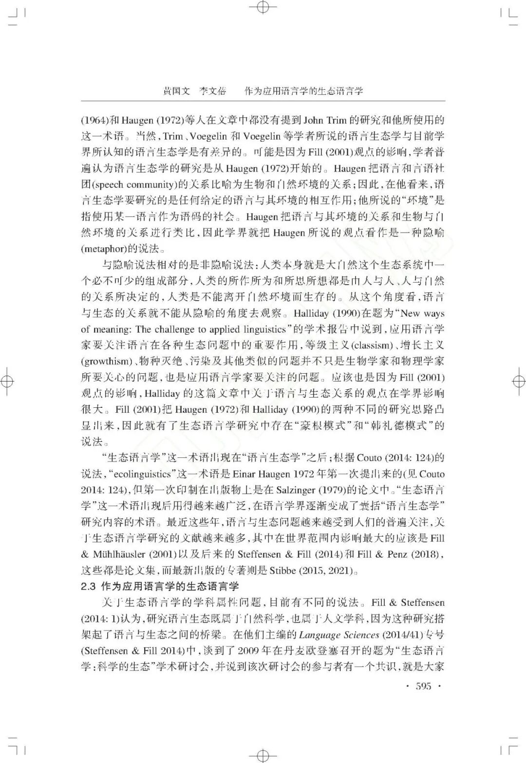 关键词:生态语言学;语言生态学;交叉学科;应用语言学