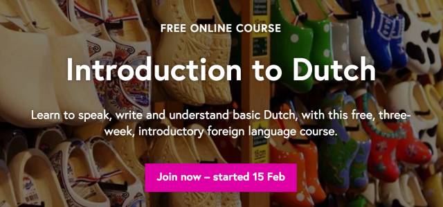 这门由荷兰格罗宁根大学(University of Groningen)提供的荷兰语入门课同样属于FutureLearn平台,这门课从时长(3周)来看就知道是门浅尝辄止的课程。这门课已经于2月15日开课,如果有想尝试的小伙伴可以前去赶一下进度。