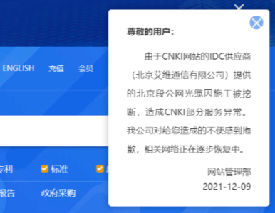 就在几个小时之前,知网的电缆“因施工”被挖断了,导致众多大学生被迫停工放假。