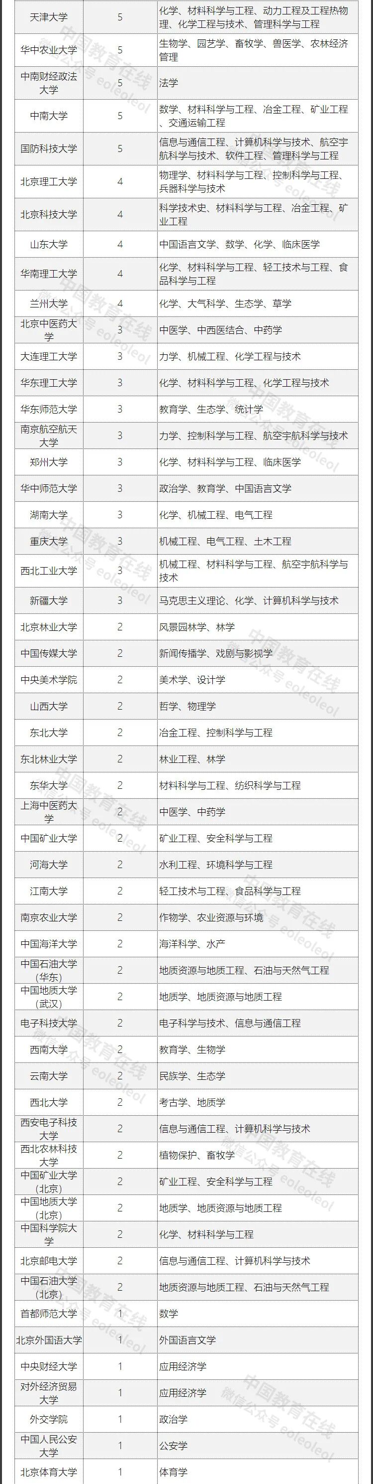 值得一提的,在第一轮“双一流”建设高校和学科名单中,北京大学入选学科有41个,清华大学有34个。
