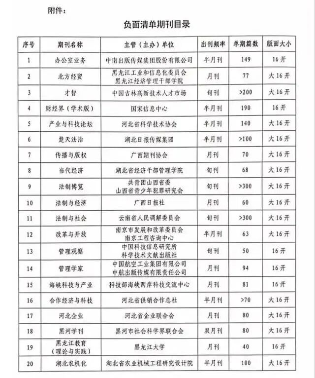列入负面清单的期刊(杂志),一般符合下列情形之一: