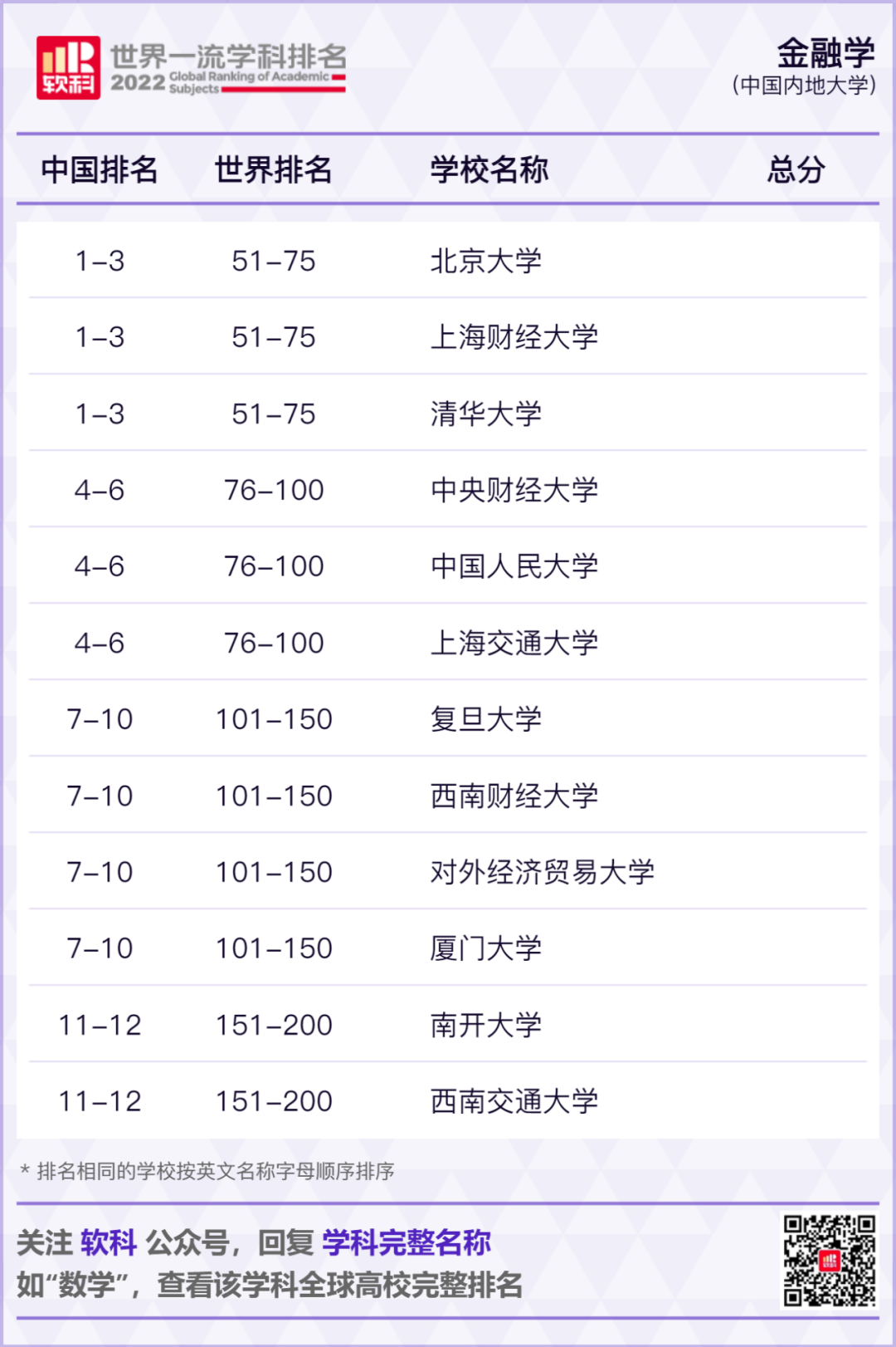 拥有世界前十的学科数最多的3所高校分别是哈佛大学(26个)、斯坦福大学(26个)、麻省理工学院(23个),其他拥有超过10个世界十强学科的高校有清华大学(14个)、加州大学-伯克利(12个)、剑桥大学(12个)、密歇根大学-安娜堡(12个)、牛津大学(11个)。![]()