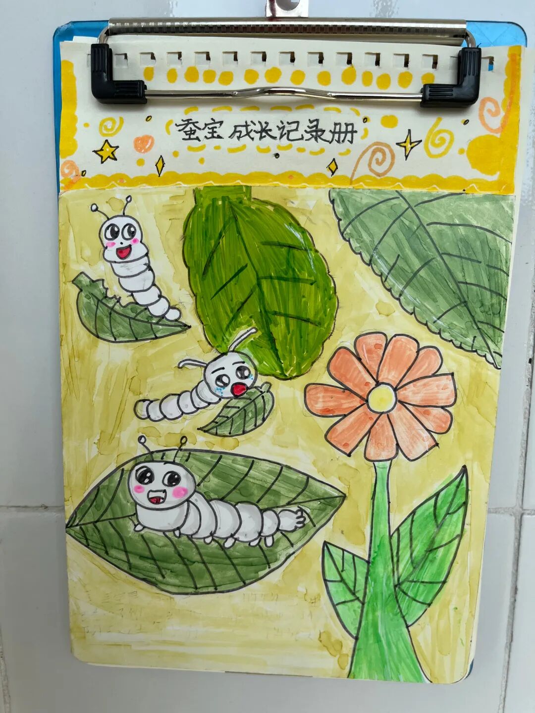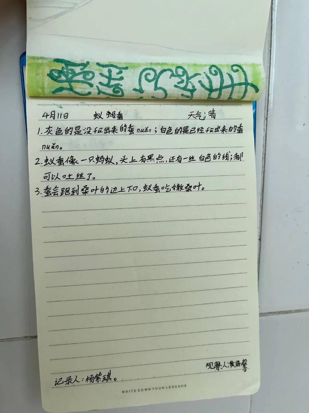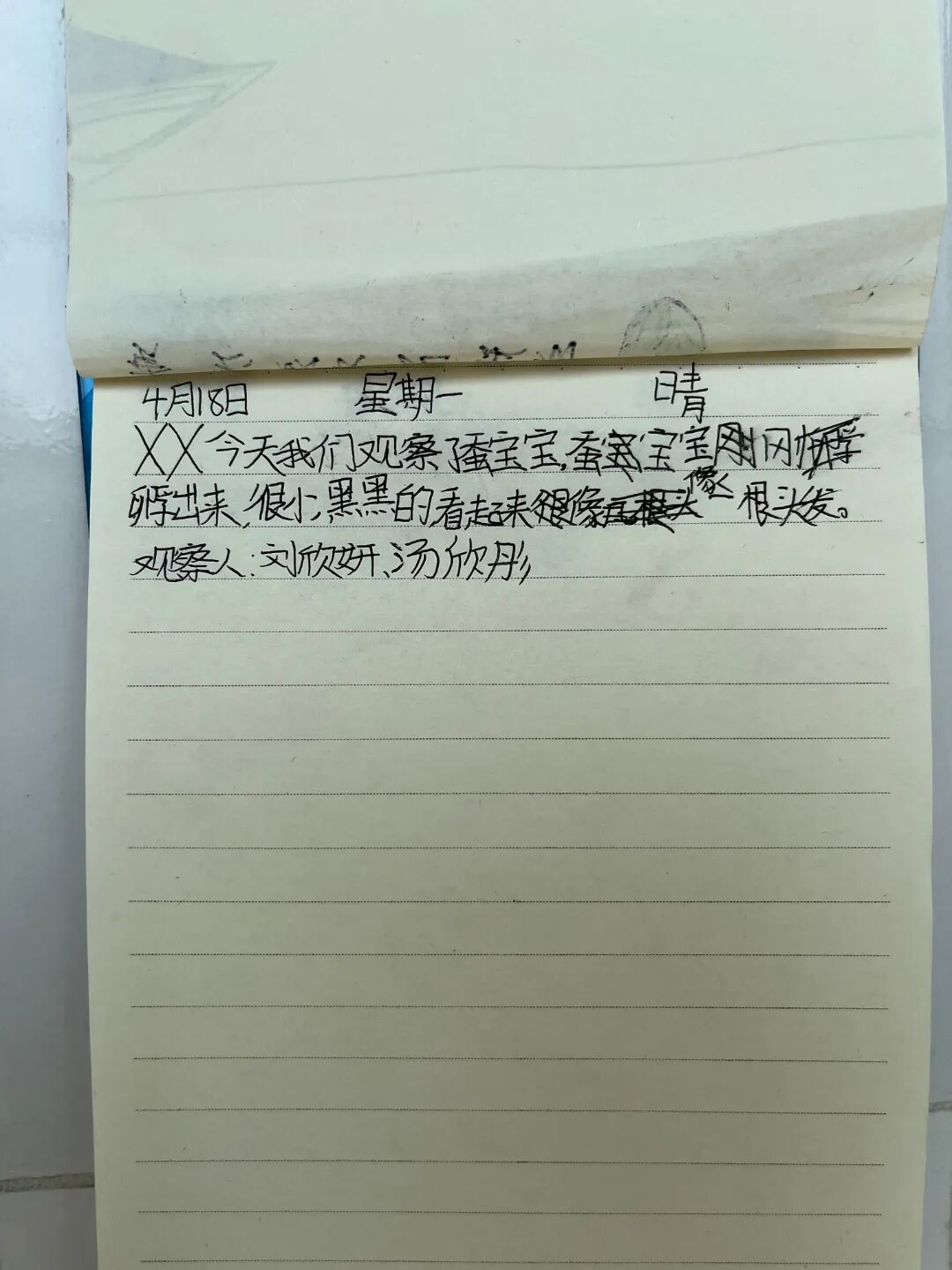 我们在自己家也有养蚕哟,看,这是我和妈妈整理的观察记录。