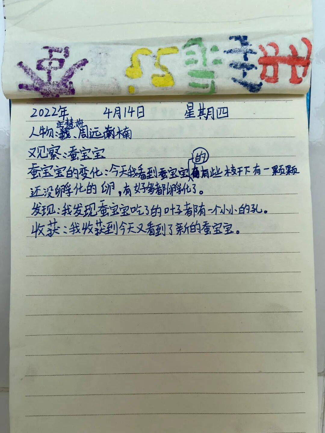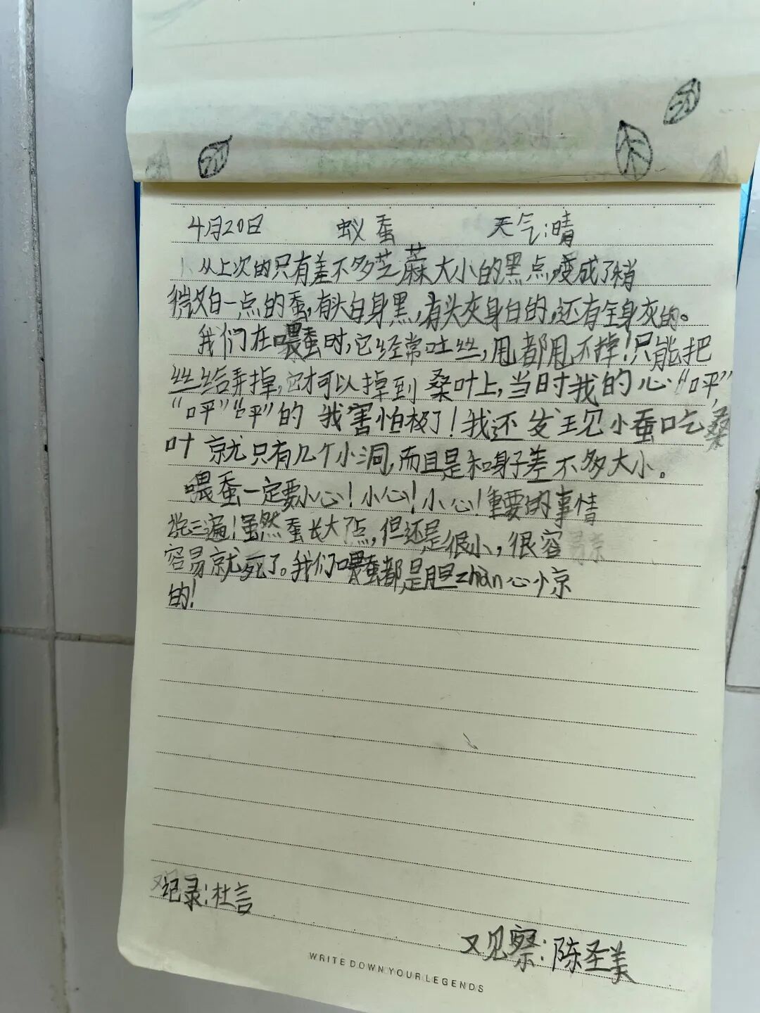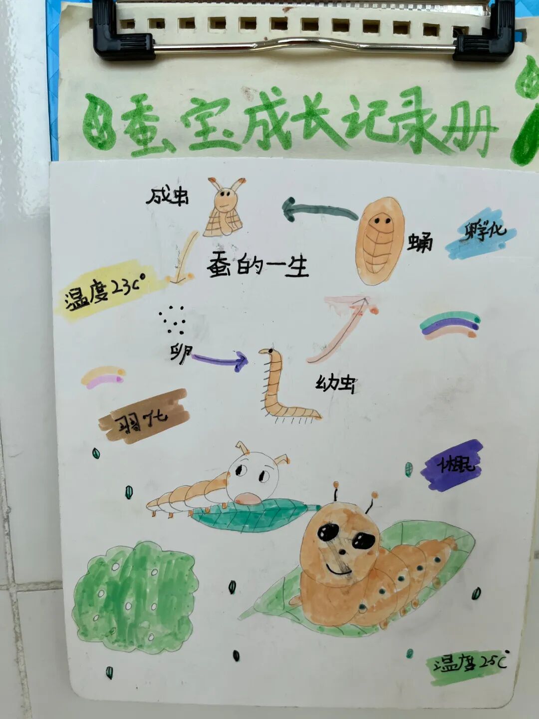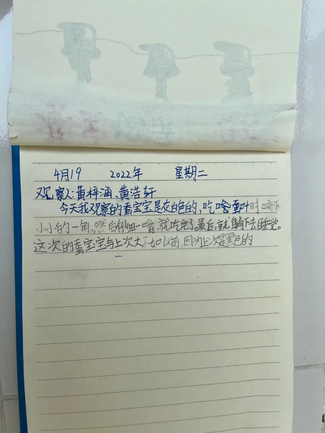 我们在自己家也有养蚕哟,看,这是我和妈妈整理的观察记录。