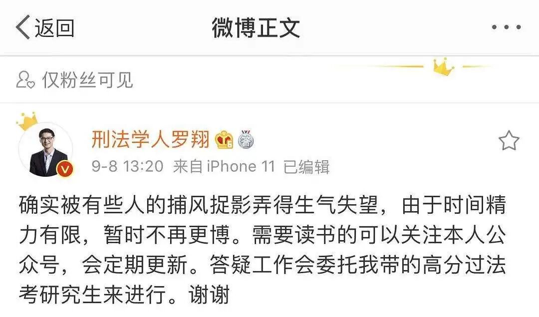 罗翔就被不少网友质疑是在影射讽刺,最后不得不宣布退出微博。