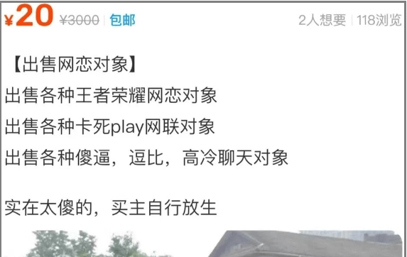 “200块全新包邮,转让网恋对象,可享受无偿外卖和茶饮服务。”