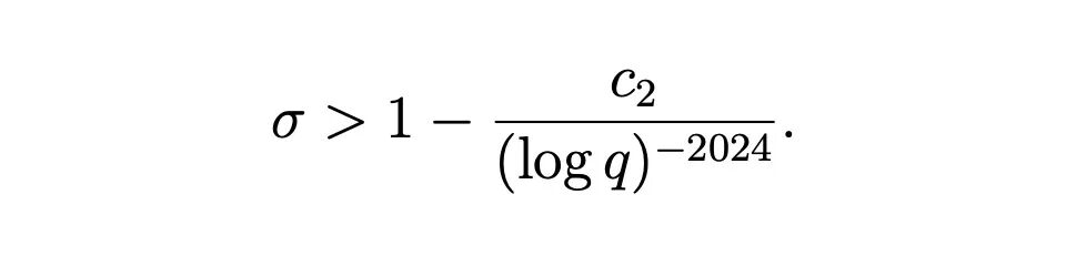 L(1, χ) 实效(effective)下界的研究难度更大,今年菲尔兹奖得主玛丽娜·维亚佐夫斯卡的导师唐·查吉尔教授、哈佛大学荣休教授本尼迪克特·格罗斯、哥伦比亚大学数学系教授戈德菲尔德等在这方面做出了重要的工作([7])。