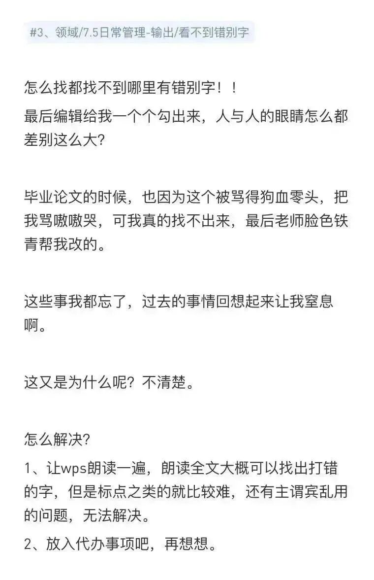 最先发现的是一些小问题。当时也不知道这是ADHD的表现,总之是察觉到了就记下来: