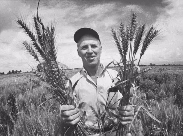 图5. 诺曼·布劳格和他培育的矮个子小麦(图片来源:https://politikon.es/)。
