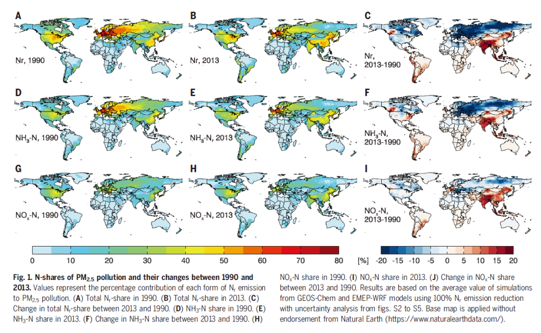 在确定活性氮对细颗粒物浓度的贡献之后,研究人员结合全球疾病负担数据,评估了全球范围内与活性氮排放相关的福利损失。1990年到2013年,由活性氮排放产生的细颗粒物造成的生命损失年从1950万年增加到了2330万年,其中氨的贡献从1630万年增加到了1930万年,氮氧化物的贡献则从1140万年增加到了1620万年。