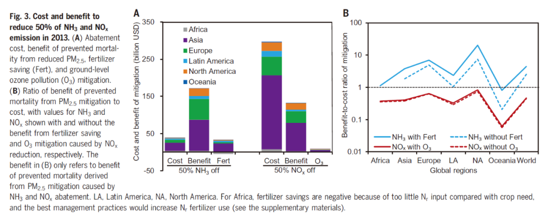 11月5日,由浙江大学、北京大学、欧洲委员会(European Commission)、英国生态水文中心(UK Centre for Ecology & Hydrology)等机构组成的研究团队在《科学》(Science)上发表的一篇论文 [5] 指出,全球细颗粒物污染治理中,农业氮减排是一种经济高效的手段。