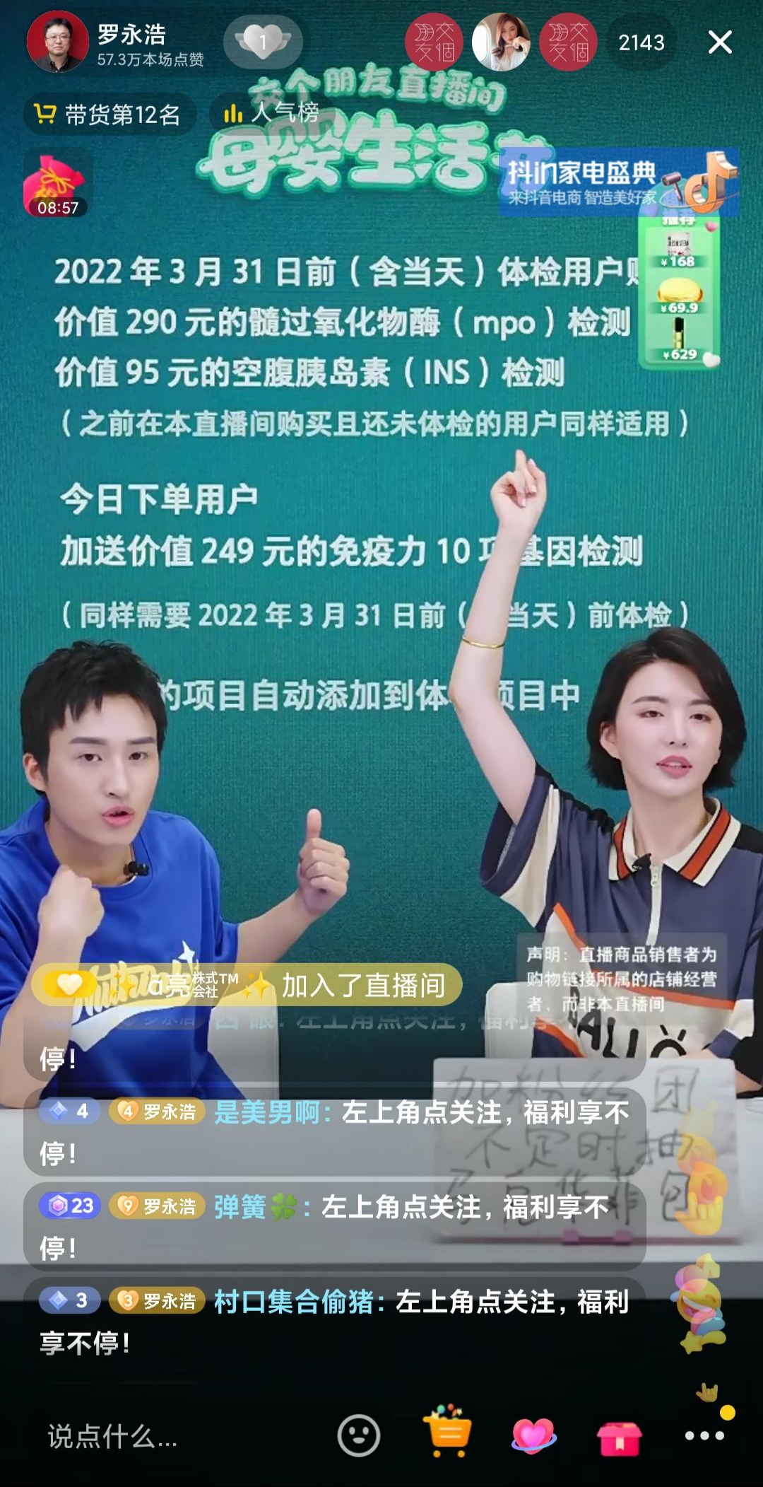 人数到十万,这还没完,雌雄双煞摘了墨镜,捂着脸开始了一段近期爆火的害羞捂脸社会摇。