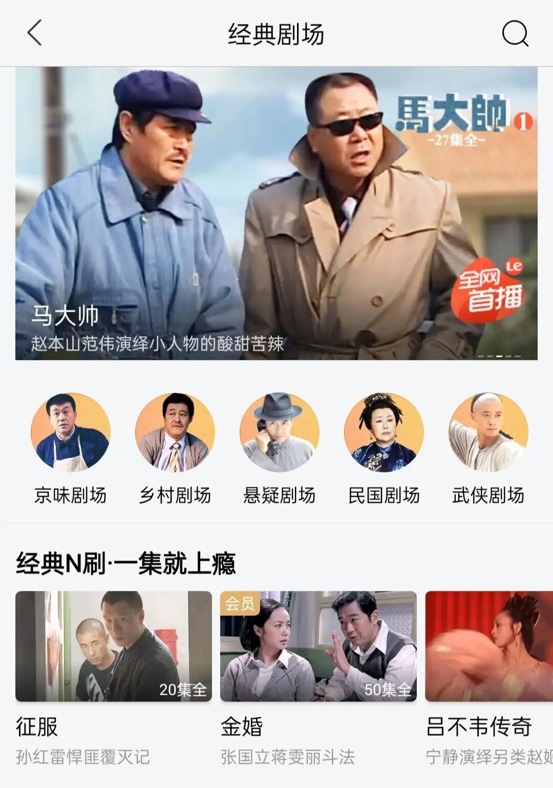 其实,点进乐视视频的App你就会发现,它的版权除了《甄嬛传》,还有平台自制的《太子妃升职记》,以及大量非常经典的高分国产剧,如《征服》《天道》《马大帅》《金婚》等等。在甄嬛宇宙之外,是孙红雷和马大帅宇宙撑起了乐视视频的版权。