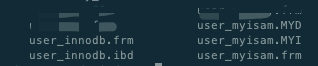 以我本机为例,user_innodb表的存储引擎是innodb,他有两个文件.frm(表描述文件)和.ibd(索引和数据文件).
