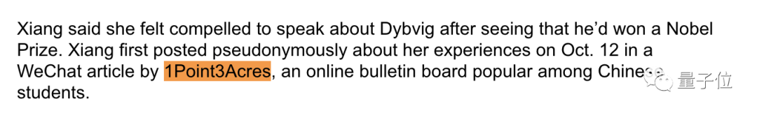 另外,彭博社在文章中也提到了1Point3Acres——即“一亩三分地”。