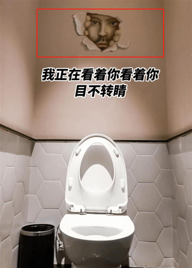厕所的墙面上,居然有一个“猥琐男”在光明正大地偷窥!