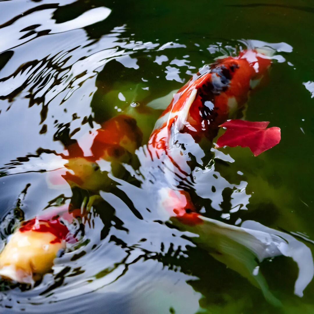 在院中锦鲤雀跃的池畔