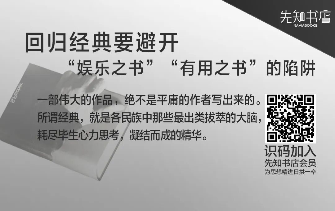 一口井被挖的再深,也不会让里面的青蛙,看到更多的天空。回归经典却要避开“娱乐之书”“有用之书”的陷阱,这也是先知书店选书、荐书的基本理念。当然,没有一个人、一个机构有资格、有能力去定义某一本书是经典,而非“娱乐之书”或狭隘的“有用之书”。