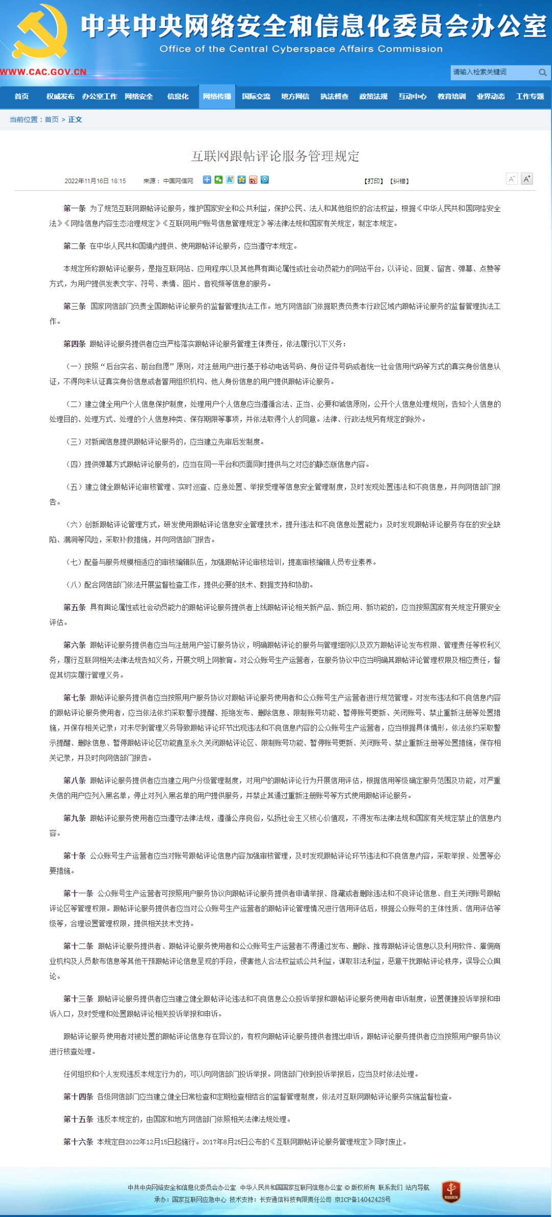 If social media platform operators fails to fulfil the management obligation which result in harmful content distributed, measures will be taken according to law, like to giver warnings, delete content, suspend comments function, close comments function permanently, restrit accounts' functions, suspend accounts, close accounts, ban on new account registration and report illegal and undesirable information to the regulator.