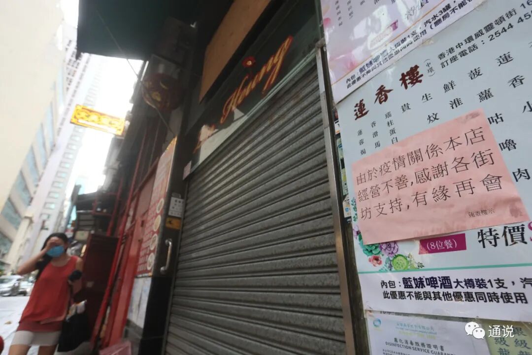 中环高楼之下,香港百年老式茶楼“莲香楼”朱红色外墙十分醒目,紧闭的铁闸门贴着“莲香楼结业”的消息。在“黑暴”和疫情双重夹击下,这家老字号已是第二次告别。
