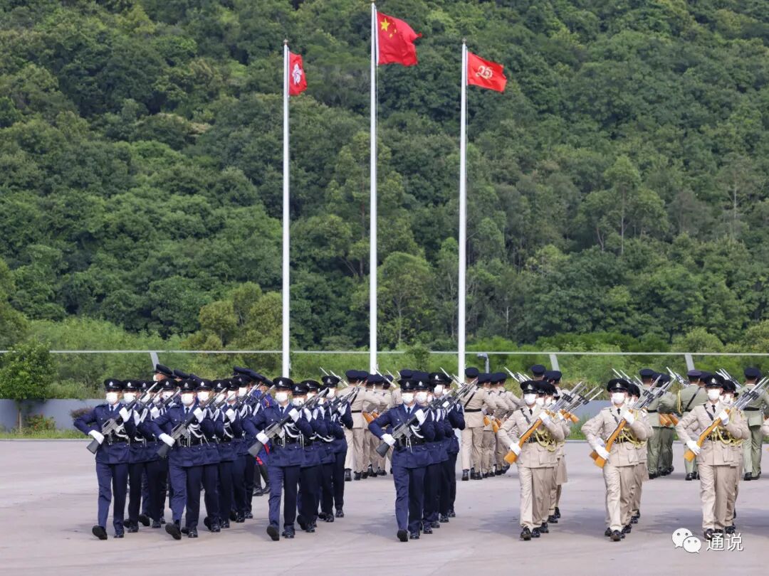 24日,香港特区政府保安局带领各纪律部队、辅助部队及青少年团体,举行“同心·展新纪律部队暨青少年团体庆国庆73周年年暨回归25周年步操大汇演”。行政长官李家超为步操大汇演主礼。