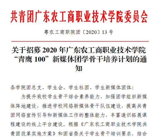 招募 | “青鹰100”新媒体团学骨干培训班Call你啦!