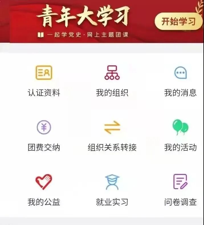 或关注“农工商团青之声”微信公众号,点击菜单栏”青年大学习“进行学习。