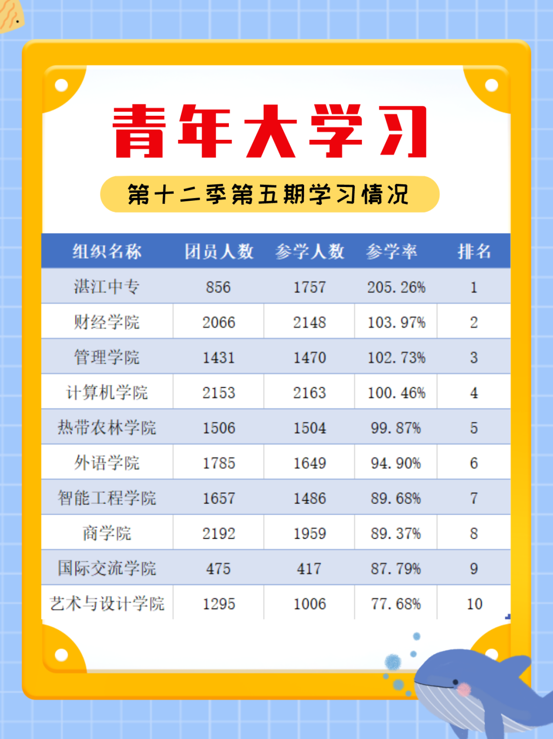 ▲各二级学院团总支“青年大学习”第十二季第五期学习统计表