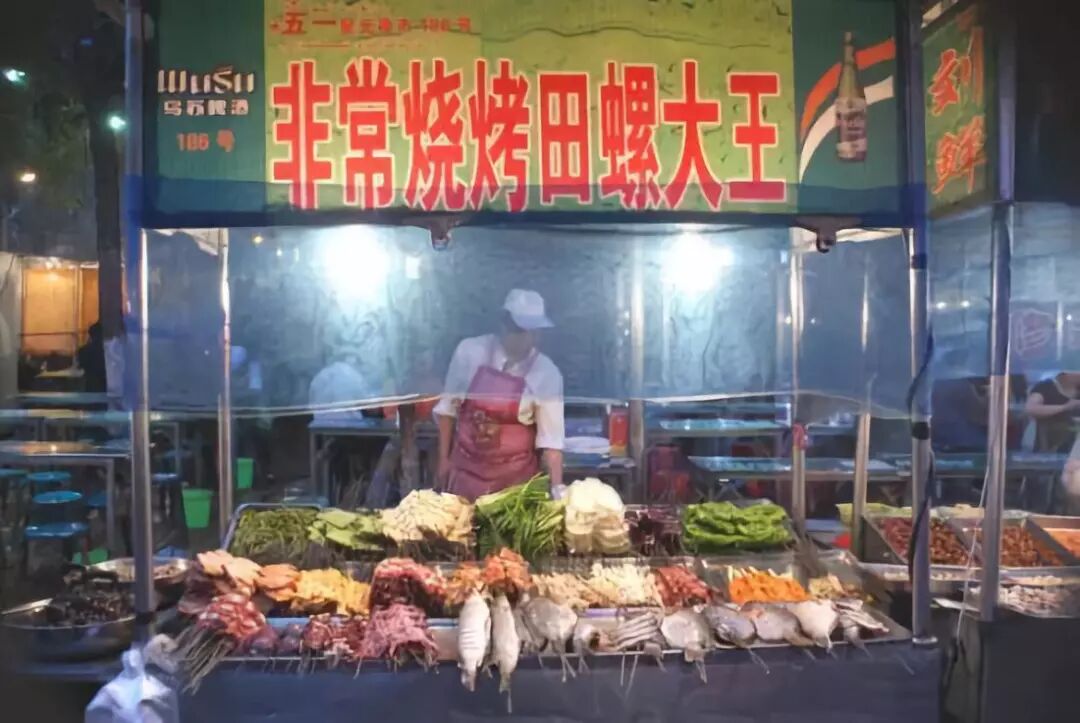 再在隔壁摊要些羊肉串、牛板筋、烤鱼、烤塞皮