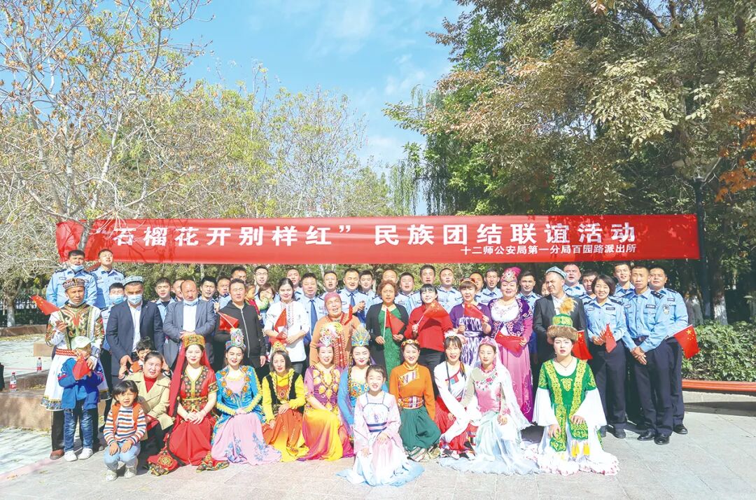 十二师以“民族团结一家亲”和民族团结联谊活动为载体,各级各单位各部门定期开展形式多样、群众喜闻乐见的民族团结联谊活动,各族干部职工群众在互帮互助、说说唱唱、聚聚聊聊中不断加深情感,十二师干部与各族职工群众成为超越血缘关系的亲人,民族团结之花开遍天山脚下。