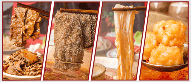 冰球鹅肠、油面筋虾滑、霸王牛肉